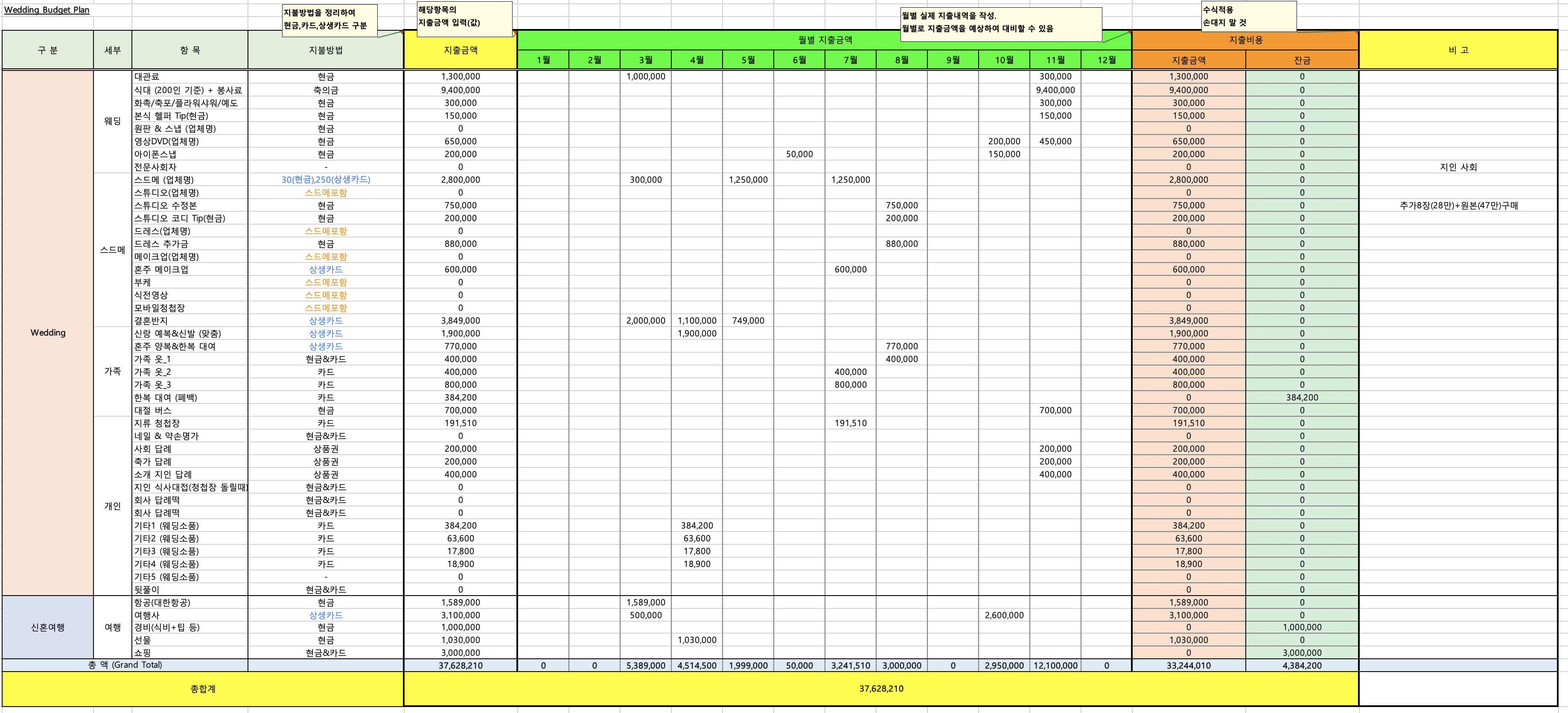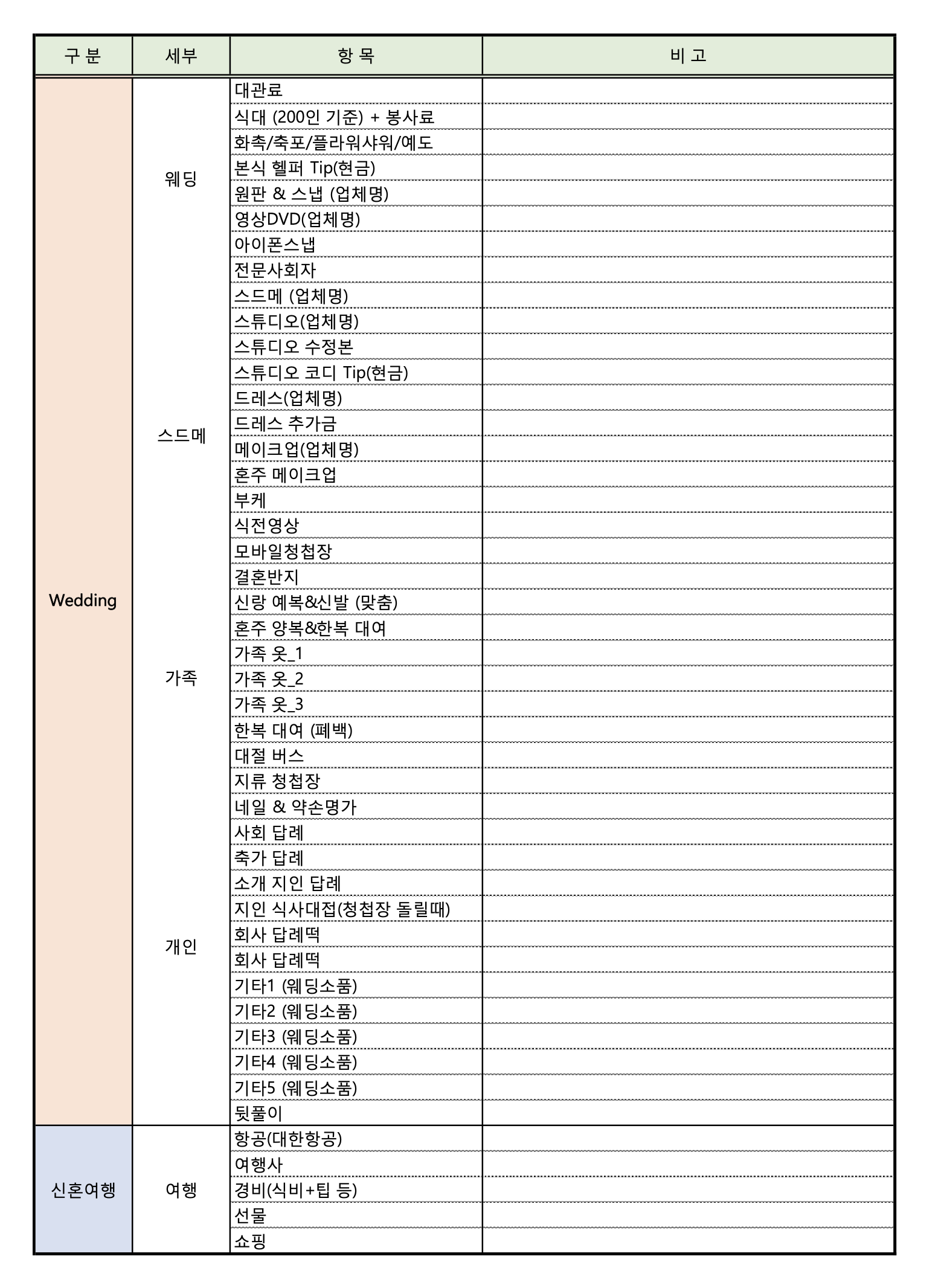 - 예산 계획 세우기 (가전, 가구, 스드메, 신혼여행 포함)